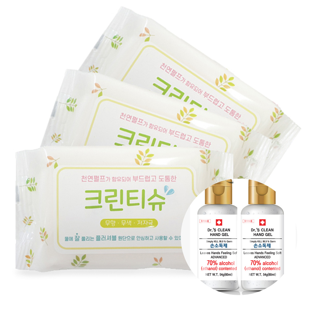 물에 잘풀리는 친환경 크린티슈/비데물티슈 10매입*30개 + [의약외품]닥터스크린겔60ml 2개